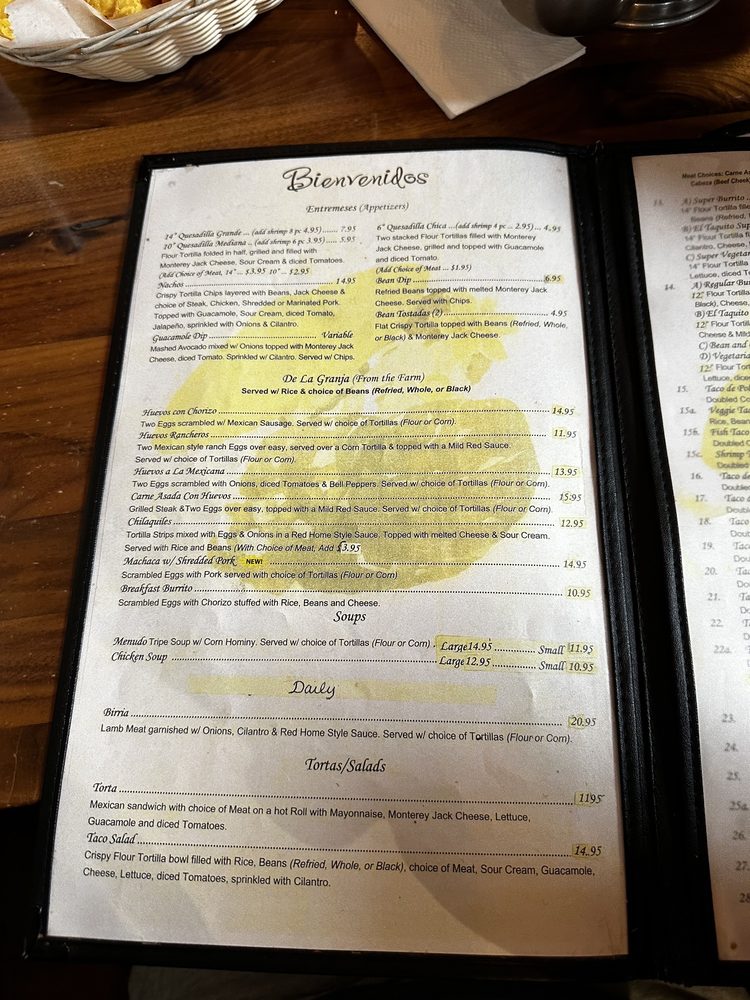 Tripe soup with corn hominy. Served with choice of tortillas: flour or corn.